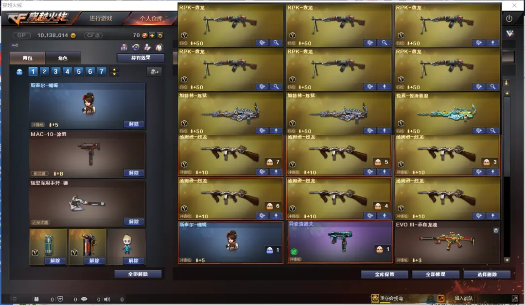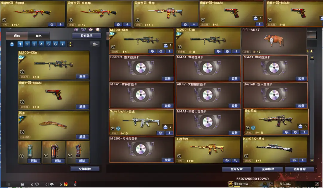 排位:可以、、、、、、化四防全装:(可以查看生化僵尸血量):无需换弹、、6烈龙、6盘龙、炼狱、异变清道夫、斯太尔蝴蝶、MAC涂鸦、死亡之眼、手斧镜、生化减速雷、超级对讲机、全部弹夹、、、、、、、、爆破四防:幻神音效(冠军之幻皮肤)、4个世冠柯尔特、传说暗裔、白虎、世冠套、王者火魄、星神、王者炎心、电竞装甲、牛牛AK、、、、幻神音效、毁灭音效、雷神音效、火麒麟音效、黑骑士音效、、、1套堕天神、7套电竞装甲、8套王者之魄、、、生化四防(沙漠玫瑰)、爆破四防(王者貂蝉、王者零、王者迷迭香、王者瞳、王者魅影)