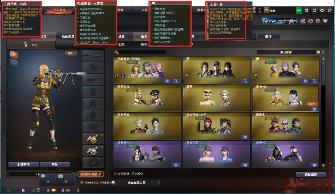 排位:可以、、、、、、、生化四防全装(可以看僵尸血量):无需换弹、6烈龙、6盘龙、炼狱、斯泰尔蝴蝶、死亡之眼、MAC-涂鸦、手斧镜、生化减速雷、超级对讲机、全部弹匣、、、、、、、、、、、爆破四防:幻神3皮+音效(冠军之幻、周瑜、AG皮肤)M200-竞技荣光、98K星神、王者幻神、王者星神、、、、COP幻灵、COP雷霆、柯尔特竞技荣光、冠军之特、、、、传说圣灵、白虎、QBZ金色蔷薇、王者蔷薇、、、幻神音效、星神音效、毁灭音效、雷神音效、火麒麟音效、、、2套雷霆、2套堕天神、6套幻灵、1套竞技荣光、、、生化四防(职业经理)/爆破四防(云悠悠、鹰、王者春、王者小乔)
