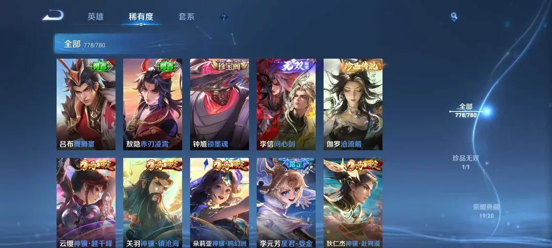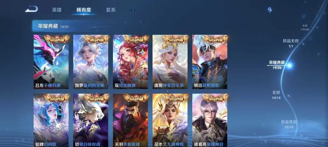 李信无双✨历史国服瑶老虎云缨55段打野59段游走✨伽罗珍品✨马年情人全套✨罗刹妄海✨踏浪归