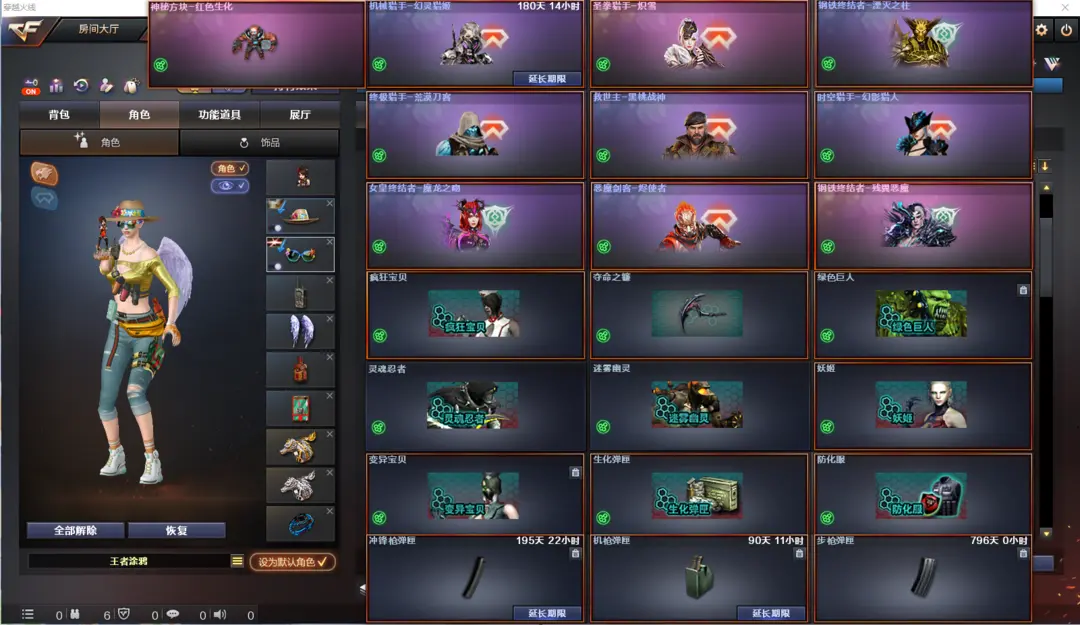 炽芒蝶刃✅幻神动感✅蝴蝶➕毒蜂➕枪娘暗刃✅6盘6烈✅生化背包✅圣拳➕终极➕机械➕剑客-皮肤✅阻神专属