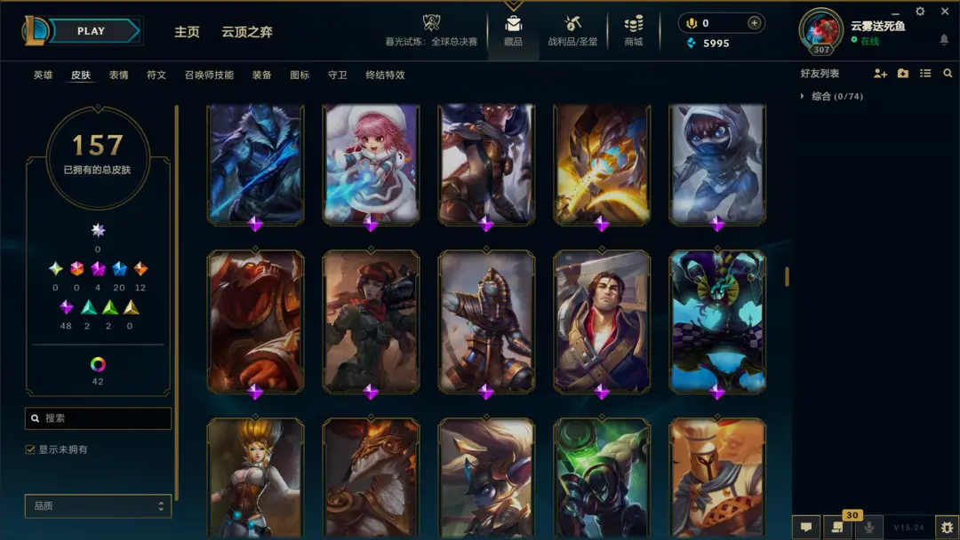 | 角色: 云雾送死鱼#72973 | 等级: 352级 华贵铂金II |