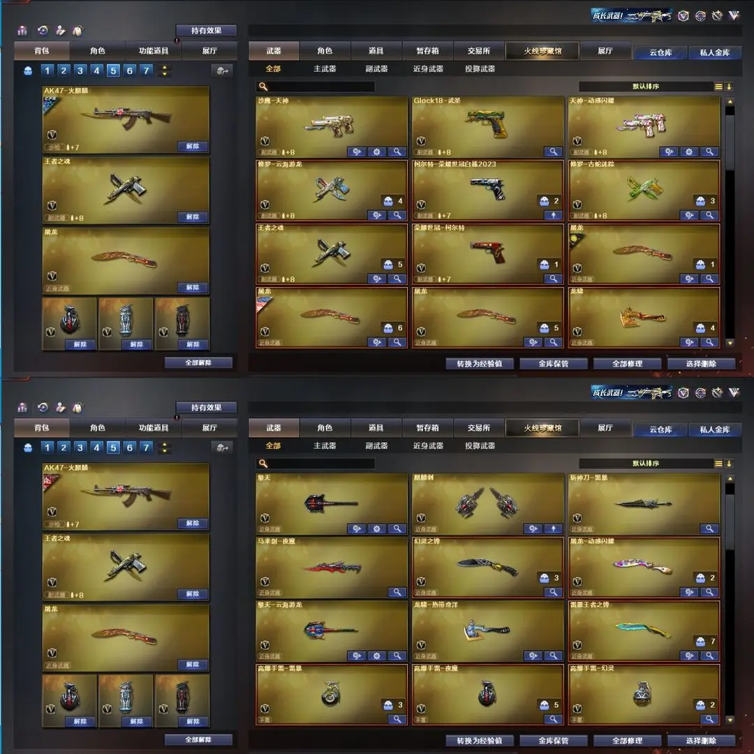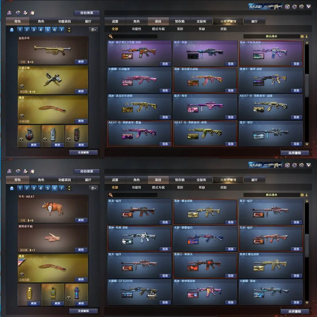 USP雷暴王者丨冥王USP丨传说幽瞳丨传说夜影丨幻神-青鹤丨幻神音效丨王者星神(觉醒)丨灵狐者-职业经理(四防)丨柯尔特-荣耀世冠白鲨2023丨荣耀世冠-柯尔特丨毁灭-枪娘格雷姐妹丨屠龙-星火燎原丨黑鲨-电流骇客 皮肤丨雷神-耀金皮肤丨黑骑士耀金皮肤丨毁灭-星空丨火麒麟-CFS2018丨火麒麟-AG战队皮肤丨黑武士-典韦皮肤丨黑龙-墨子皮肤丨黑武士-361丨毁灭-荣耀之怒丨天龙-传奇70KG丨天龙-传奇白鲨丨炽天使丨零-热舞青春丨空丨HK417-朱雀丨白虎-电玩蓝兔丨古蛇迷踪套丨雷神-精英刀锋丨天龙-曼陀罗丨双面神丨QBZ-吕布丨金色小号丨牛牛-AK47丨AK47-斯沃特丨雷霆王者投掷套丨竞技荣光投掷套丨雷暴投掷套丨夜魔投掷套丨幻灵投掷套丨云龙投掷套丨QBZ音效丨雷神音效丨火麒麟音效丨黑龙音效丨黑骑士音效丨毁灭音效丨云龙动感音效