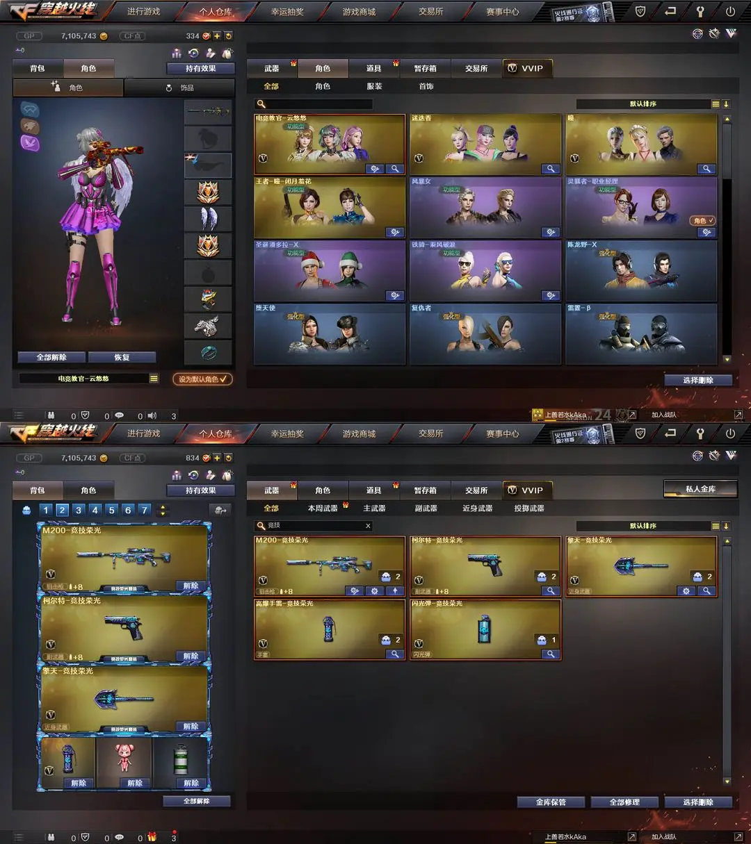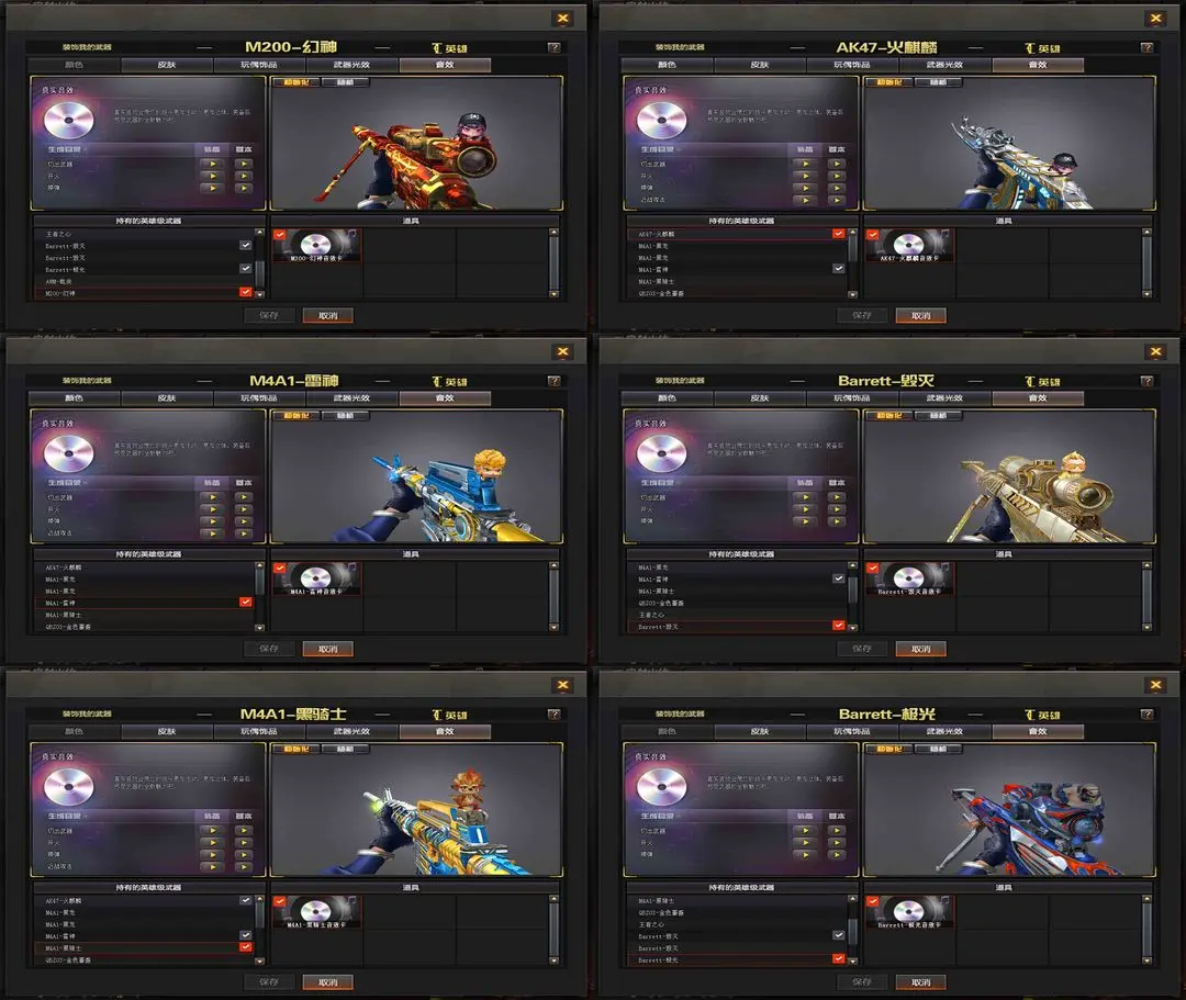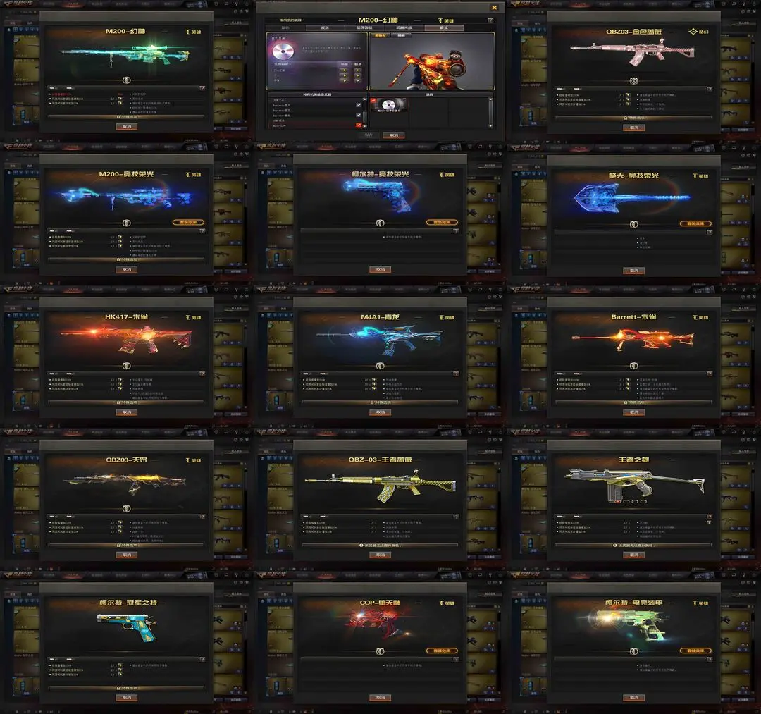 【装备道具】:【幻神三件套m200-幻神+幻神-丹凤+幻神音效卡★qbz冠军之薇★柯尔特-冠军之特+Knife冠军之刃】【m200-竞技荣光+柯尔特-竞技荣光+擎天-竞技荣光】【qbz金色蔷薇+冠军之薇★qbz-王者蔷薇★qbz-天罚】【hk417-朱雀+青龙】【火麒麟+火麒麟-冠军之心+火麒麟-cfstar+火麒麟音效卡】【雷神+雷神-荣耀之魄+雷神-虎将+幻神音效卡】【黑龙+黑龙-暗月】【黑骑士+黑骑士-冠军之势+黑骑士-地狱火+黑骑士音效卡】【无影+无影-耀金】【毁灭+毁灭-耀金+毁灭音效卡】【极光+极光音效卡】【天龙+天龙-cfstar】【修罗+修罗-cfs2018+修罗-cfstar】【龙啸+龙啸-冠军之啸】【6盘龙+炼狱+6烈龙+死亡之眼+双面神】【柯尔特-电竞装甲+电竞装甲手蕾套】王者之心 王者之烈 王者之锋 王者之啸 炫金黑龙 炫金骑士 千变 死神 黑武士 黑鲨 烈火 cop-堕天神 屠龙 擎天 麒麟刺 【角色】云悠悠 迷迭香 瞳 王者-瞳-闭月羞花★爆破生化挑战全装可排位★生化弹夹防化服变异宝贝死亡之眼对讲机不退包★佣兵觉醒无需换弹手斧镜减速雷★捕食者之眼查看血量★