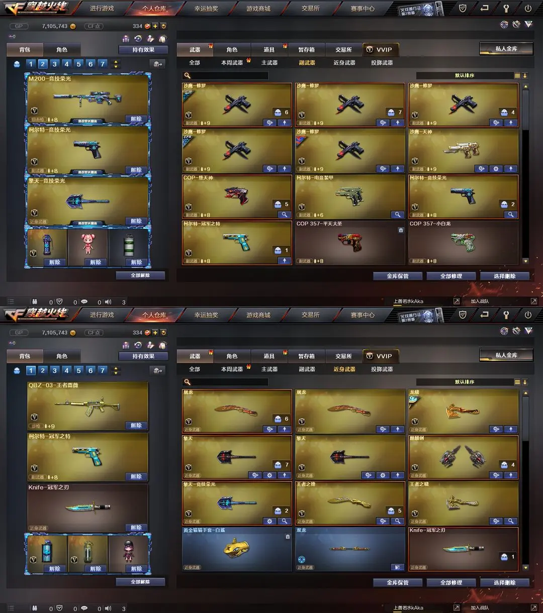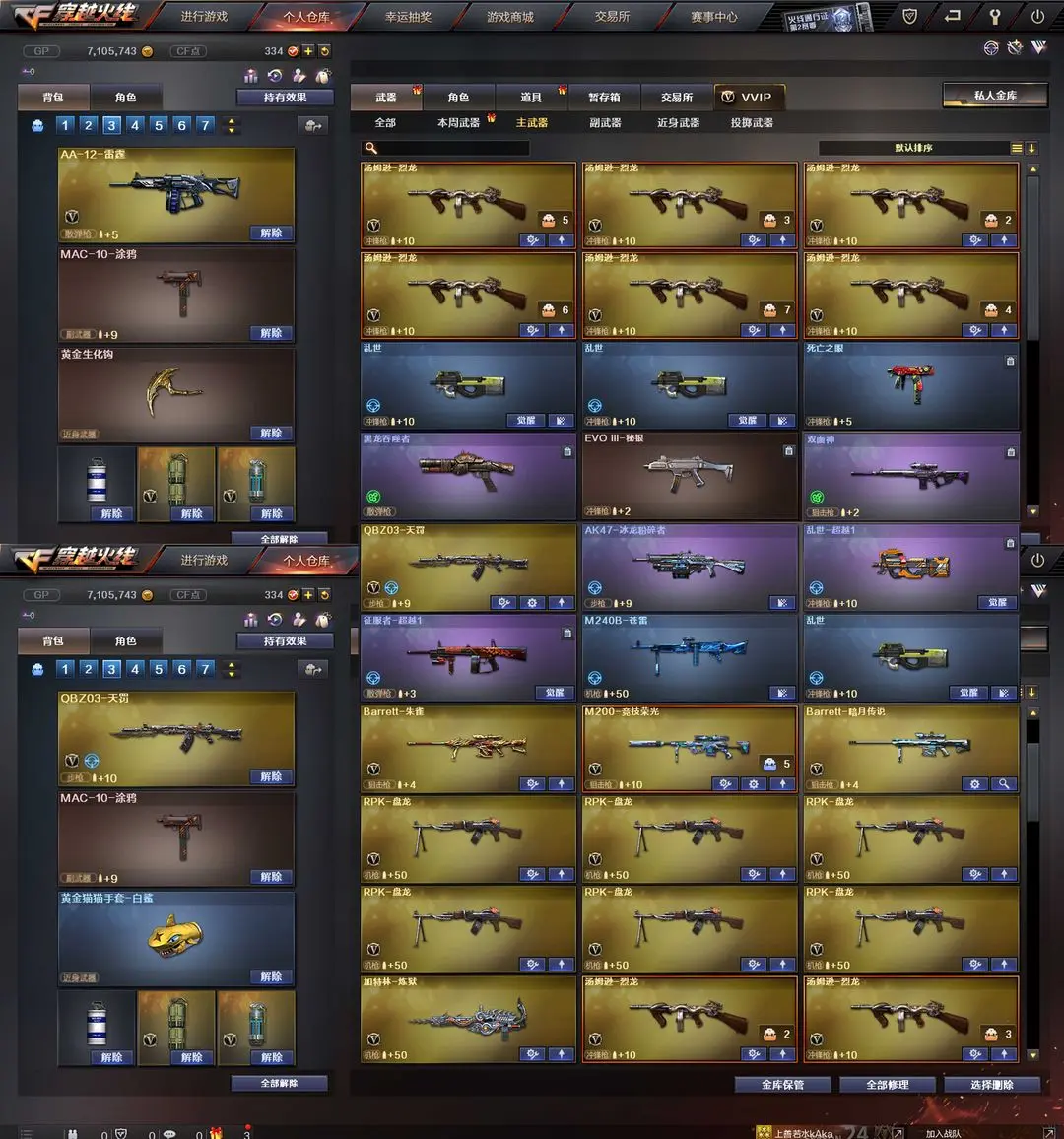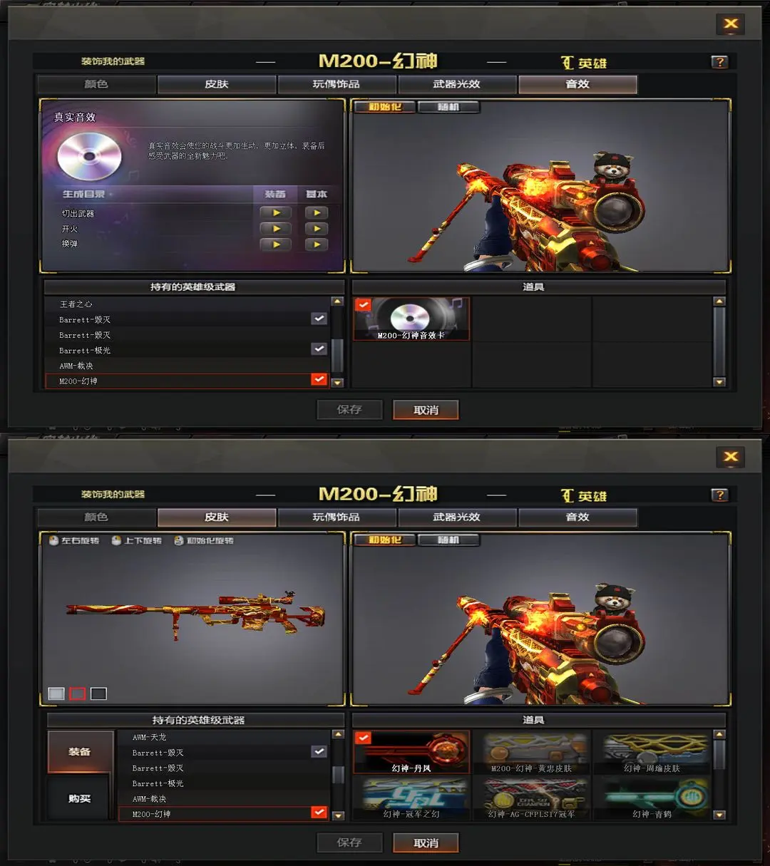【装备道具】:【幻神三件套m200-幻神+幻神-丹凤+幻神音效卡★qbz冠军之薇★柯尔特-冠军之特+Knife冠军之刃】【m200-竞技荣光+柯尔特-竞技荣光+擎天-竞技荣光】【qbz金色蔷薇+冠军之薇★qbz-王者蔷薇★qbz-天罚】【hk417-朱雀+青龙】【火麒麟+火麒麟-冠军之心+火麒麟-cfstar+火麒麟音效卡】【雷神+雷神-荣耀之魄+雷神-虎将+幻神音效卡】【黑龙+黑龙-暗月】【黑骑士+黑骑士-冠军之势+黑骑士-地狱火+黑骑士音效卡】【无影+无影-耀金】【毁灭+毁灭-耀金+毁灭音效卡】【极光+极光音效卡】【天龙+天龙-cfstar】【修罗+修罗-cfs2018+修罗-cfstar】【龙啸+龙啸-冠军之啸】【6盘龙+炼狱+6烈龙+死亡之眼+双面神】【柯尔特-电竞装甲+电竞装甲手蕾套】王者之心 王者之烈 王者之锋 王者之啸 炫金黑龙 炫金骑士 千变 死神 黑武士 黑鲨 烈火 cop-堕天神 屠龙 擎天 麒麟刺 【角色】云悠悠 迷迭香 瞳 王者-瞳-闭月羞花★爆破生化挑战全装可排位★生化弹夹防化服变异宝贝死亡之眼对讲机不退包★佣兵觉醒无需换弹手斧镜减速雷★捕食者之眼查看血量★