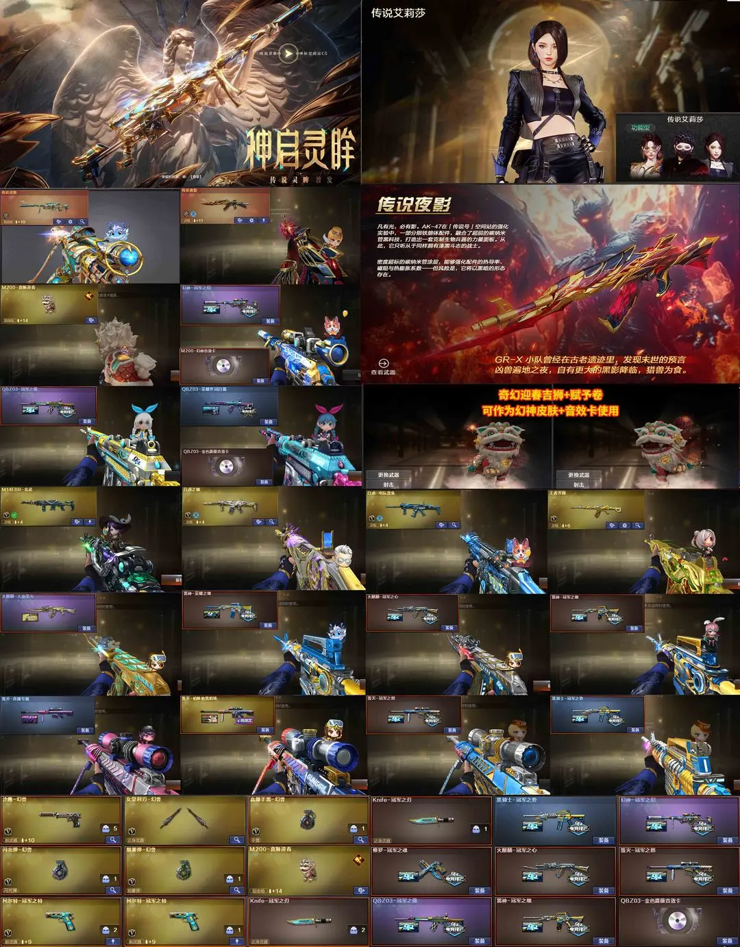【装备道具】:喜狮迎春狮子★吉狮赋予券★【传说艾莉莎】【传说灵眸】【传说夜影】【m200-幻神幻神-冠军之幻m200-幻神音效卡】【沙鹰-幻兽女皇利刃-幻兽幻兽套手雷】【冠军之刃2★冠军之特2】 【4盘龙2加特林炼狱2★m14ebr-玄武】【汤姆逊-烈龙7★斯泰尔-枪娘暗刃】【qbz03-金色蔷薇★qbz03-冠军之薇★qbz03-荣耀世冠白鲨★qbz03-金色蔷薇音效卡★王者芳薇】【白虎-电玩蓝兔★白虎之魄】【m4a1-雷霆barrett-雷霆cop 357-雷霆雷霆王者之锋雷霆王者手蕾套7】★毁灭音效卡★雷神音效卡★金色蔷薇音效卡★黑骑士音效卡★幻神音效卡★王者之心★王者之魄★USP神工天巧★COP雷霆★毁灭枪娘格雷姐妹★火麒麟大唐荣光★黑骑士耀金★毁灭耀金★毁灭冠军之怒★雷神荣耀之魄★火麒麟冠军之心★雷神冠军之魄★黑骑士冠军之势★修罗冠军之魂★王者之潘多拉★王者炽天使★云悠悠★炫★职业选手★女主播★B站名片★火线妹语音包★荣耀之证卡牌★变异宝贝死亡对讲机不退包★佣兵觉醒无需换弹手斧镜减速雷★捕食者之眼查看血量
