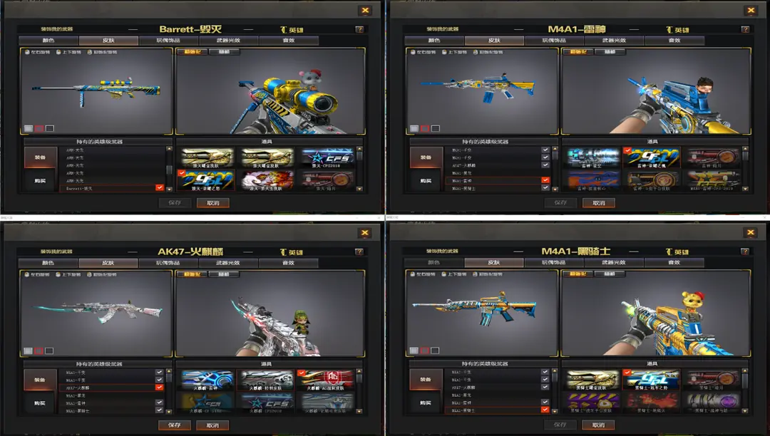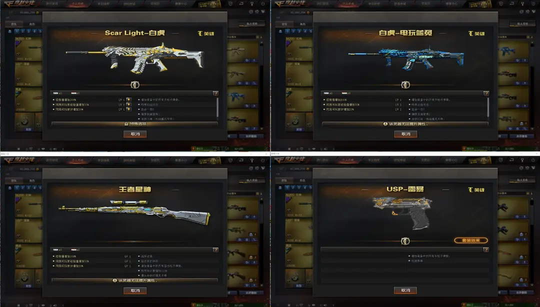 优质装备:闪光弹-竞技荣光;烟雾弹-竞技荣光;高爆手雷-竞技荣光;擎天-竞技荣光;M200-竞技荣光;M4A1-雷霆;高爆手雷-雷霆;烟雾弹-雷霆;闪光弹-雷霆;雷霆之契;M4A1-雷神;M200-幻神;M4A1-黑骑士;龙啸;沙鹰-修罗;屠龙;AK47-火麒麟;M4A1-龙血;加特林-炼狱;雷霆之锋;Barrett-毁灭;AN94-超新星;AWM-天龙;M4A1-黑龙;沙鹰-天神;AK47-无影;麒麟刺;AK12-天启;RPK-盘龙;AK47-黑武士;擎天;汤姆逊-烈龙;Barrett-极光;M4A1-死神;AK47-机械迷城