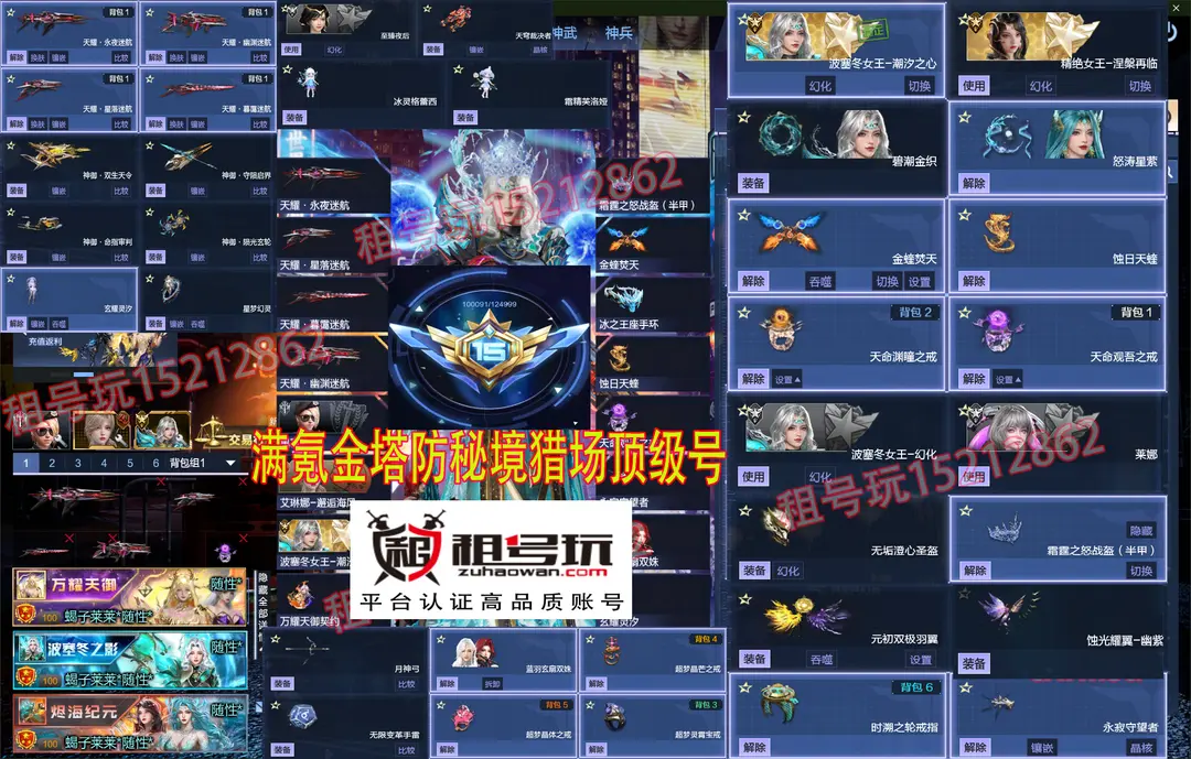 满氪最强✨皮肤神御套湮沉旋戒鹤唳潮夕波塞冬957伤⑩+⑩神谕套渊瞳莱娜✨望舒璃璎涅槃女王金蛇双姝霜霆