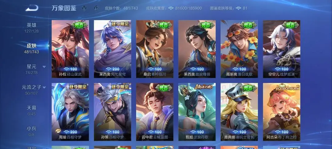 | 英雄: 125 | 皮肤: 491 |