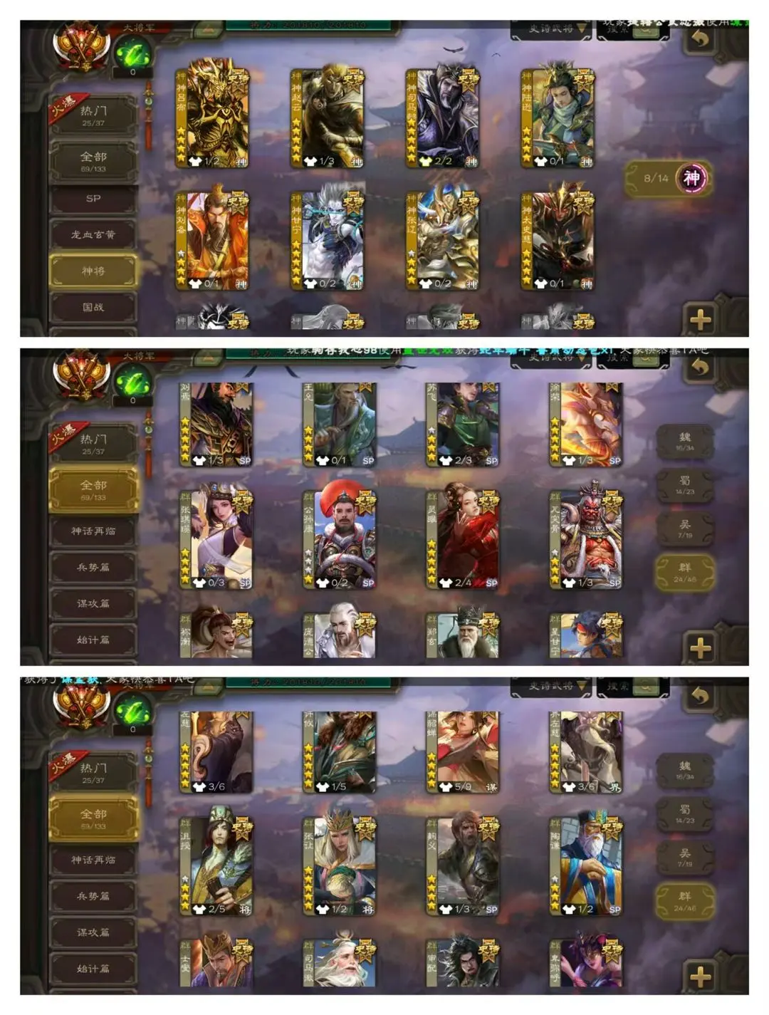 69史诗武将: 张让金皮,势魏延神太史慈星甘宁苏飞郑玄等。