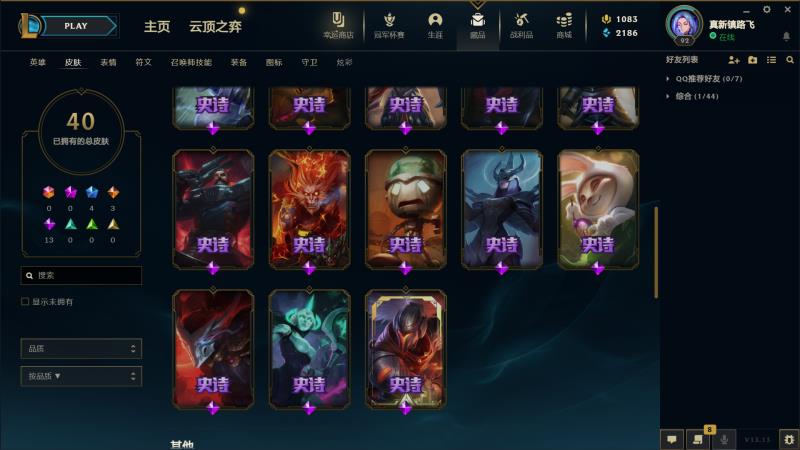 如遇到WeGame提示密码错误时,请多试几下,不用马上撤单,这是上号器异地登录的原因不是密码错误,给您带来麻烦请谅解。 本号可排位,请勿挂机逃跑 本号皮肤推荐☞腥红之月剑魔、泳池派对盲僧、泳池派对剑姬、霸天塞恩、原计划猩红亚索等皮肤